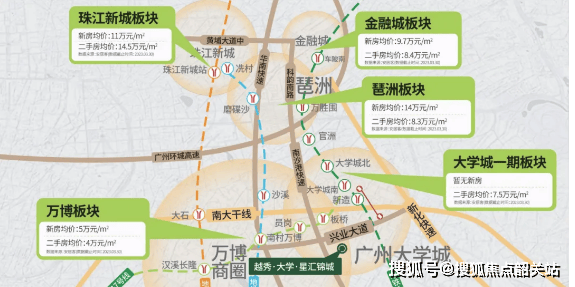 项目坐落于番禺南村板块,临近国际创新城,距离万博 8 公里,大学城 10 公里。虽然距离地铁 7 号线板桥站约 3 公里,步行或公交通勤不太便捷,但骑行电动车 10 多分钟可达地铁站,且小区开通了业主楼巴直达板桥地铁站,高峰 15 分钟一班,“十分巴士” 减轻通勤负担。自驾方面,兴业大道、南大干线等番禺东西向发展大动脉,串联万博 CBD、广州南站等板块,南沙港快速、新化快速、番禺大道无缝衔接金珠琶,经金光东隧道可速达大学城一期,自驾出行十分方便。