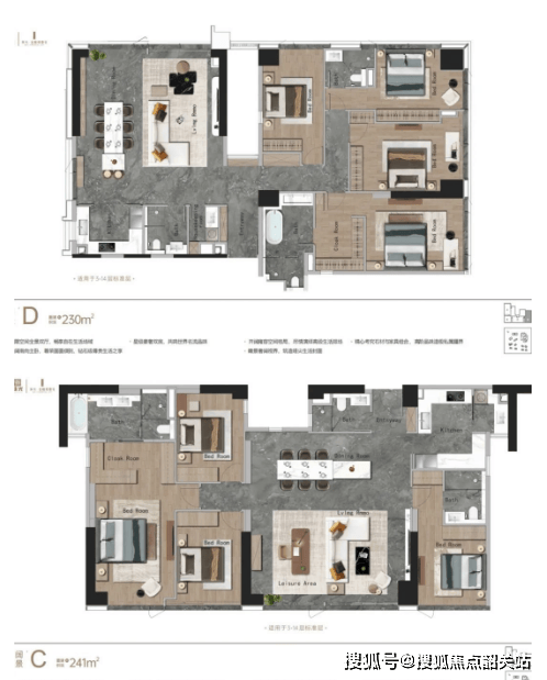 江景叠墅:坐拥最临江的南向江景景观,面积约255-560平方米,可塑性空间非常大,可以根据需要进行上下或左右打通使用。