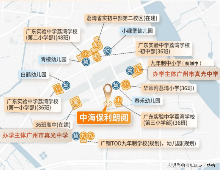 项目周边教育资源配置堪称“天花板级”:一路之隔即是广东实验中学荔湾学校第三小学部(省实三小,2022年已开学),周边环绕省实一小、省实二小、华师附小等名校,形成广州第一梯队教育矩阵。2024年中考学霸云集,升学率名列前茅。项目自身配建2所中学(36班初中+36班高中,其中一所为广州真光中学,另一所为广东省实验初中,预计2025年竣工),加上板块内规划的32所学校,从幼儿园到高中一站式全龄教育,15分钟步行即达,让孩子赢在起点。
