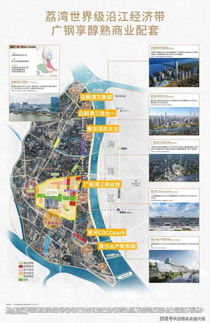 :板块内6条地铁环绕(广佛线、1号线已运营,11号线鹤洞东站2024年底开通,10号线广钢新城站2025年开通),1站直达海珠,半小时通达广州中心五区;