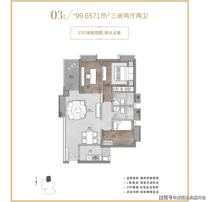 5. 103㎡三室两厅:改善首选,大面宽阳台享惬意生活