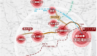 在这样的产业背景下,智联汽车小镇的区位优势显得尤为突出。它紧邻南大干线,这条被誉为番禺“大动脉”的快速路,如同一条金色的纽带,将莲花湾与广州的各个核心区域紧密连接在一起。出门便是南大干线,一路向西,可以快速直达大学城,感受浓厚的学术氛围与青春活力;继续前行,便是万博中央商务区,这里是番禺的商业中心,高楼林立,商场云集,吃喝玩乐购一应俱全。通过南大干线链接新化快速和华南快速,更可以迅速到达琶洲会展中心和天河中央商务区。无论是前往珠江新城上班,还是去琶洲参加展会,亦或是到天河城购物娱乐,都能在短时间内轻松抵达。这种高效的交通网络,极大地缩短了通勤时间,让生活与工作之间的切换变得更加从容自如。