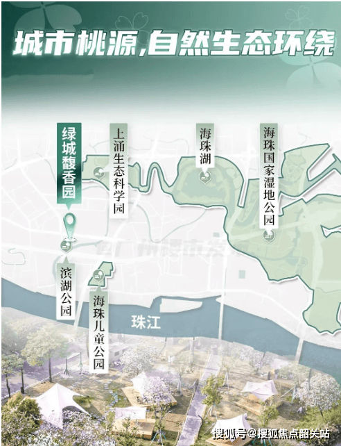 生态资源优越:项目背靠河涌,打造专属滨河公园,周边有海珠儿童公园(直线距离约 1 公里)、海珠湖(约 2 公里)、海珠国家湿地(约 3 公里),形成天然生态 “绿肺”,负氧离子含量高,居住环境宜居;社区内部打造中式园林(借鉴东京虹夕诺雅酒店风格),叠水瀑布、莫奈《睡莲》主题景观、下沉式观瀑亭等景观节点丰富,四季有花,步移景异,沉浸式游园体验远超普通社区。