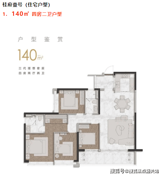 粤海云港城在产品规划上展现了极高的专业度与前瞻性,通过细分市场需求,构建了丰富多元的产品矩阵。目前项目主要分为三个组团进行销售,分别是住宅性质的“桂府壹号”组团,以及公寓性质的“傲云”和“云翼”组团,此外还有尚未对外出售的写字楼部分,形成了完整的商务居住生态圈。其中,“桂府壹号”作为纯住宅组团,共规划714户,涵盖了D1至D9栋。在梯户比设计上,项目充分考虑了居住的舒适度与私密性,D3、D5、D6、D7栋采用了2梯2户的尊贵配置,而D1、D2、D8、D9栋则为2梯4户,首层均设置为宽敞的大堂,彰显了归家的仪式感。住宅产品的实用率控制在78%至82%之间,在市场上属于较为优秀的水平。在售户型涵盖了140平方米、189平方米、200平方米以及264平方米的四房单位,满足了从改善型家庭到终极置业者的不同需求。特别是目前清盘的140平方米户型,价格优惠力度较大,单价进入“6字头”区间,部分房源总价不到800万,极具性价比。