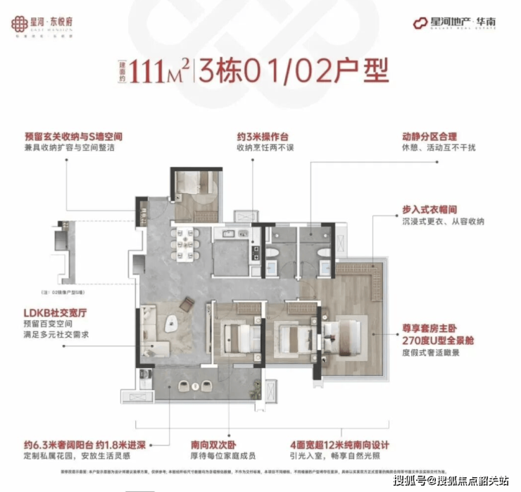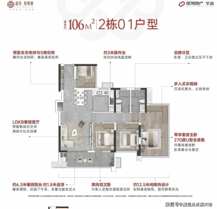 星河东悦府由星河控股开发,秉承“以人为本、宜居优先”的社区理念,致力于为南沙区府板块购房者打造高舒适度、高实用率的居住环境。项目涵盖89-138㎡多种四房产品,设计亮点包括可砸全赠送飘窗、超高使用率户型以及南北通透布局,让空间利用率达到128%,同等面积相比市场其他产品多出一房,满足刚需和改善型家庭的多元需求。住宅户型布局兼顾采光、通风和储物功能,体现现代居住美学。