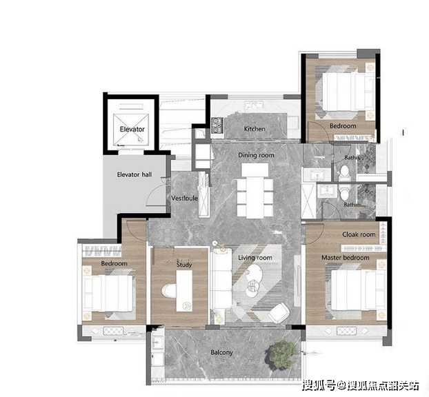 4.2 一百三十六平方米四房:转角阳台与中西厨的奢适享受
