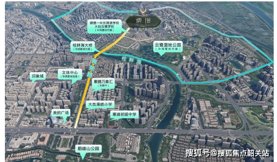 澐璟的交通能级,远超普通改善盘。项目步行可达佛山地铁3号线驹荣北路站(已通车),30分钟直达广州南站,无缝接入广佛1小时生活圈。地面路网方面,桂畔海大桥(预计2026年建成)正在加速施工,建成后将直接串联大良东区与云鹭片区,1公里内接驳碧桂路、南国东路等主干道。从澐璟出发,5分钟到顺峰山公园,10分钟达华侨城欢乐海岸PLUS,15分钟覆盖区政府、人民医院等核心节点。值得注意的是,随着顺德“东拓”战略推进,云鹭片区已成为政府重点投入区域,未来还将规划新增跨河通道与公交枢纽。短期虽有部分道路施工影响,但长期看,这里正从“边缘待开发”蜕变为“东区延伸黄金走廊”。