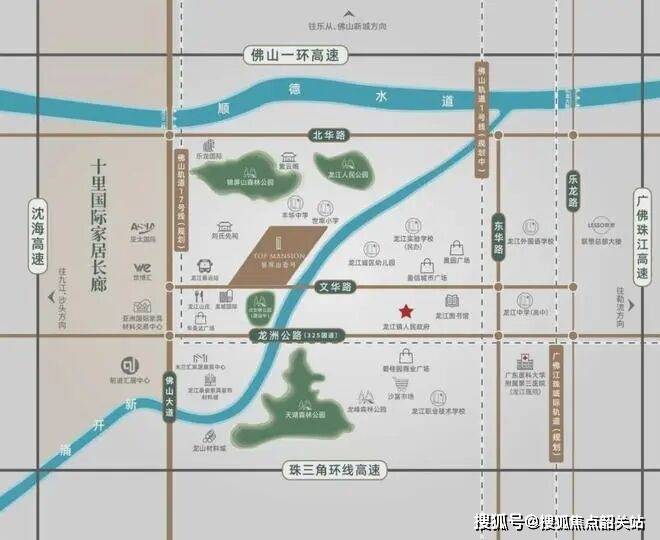 项目距离规划中的佛山地铁5号线龙江延伸段直线约1.2公里,虽然目前尚未开通,但根据佛山市轨道交通远期规划(2030年),该线路将南延至龙江,并设顺德西站作为城际换乘节点。日常出行则依赖现有公交网络:龙江客运站设有11条公交首末线路,覆盖镇内主要社区及周边镇街,从小区出发步行约10分钟即可抵达公交枢纽,通勤或跨区办事都算便利。