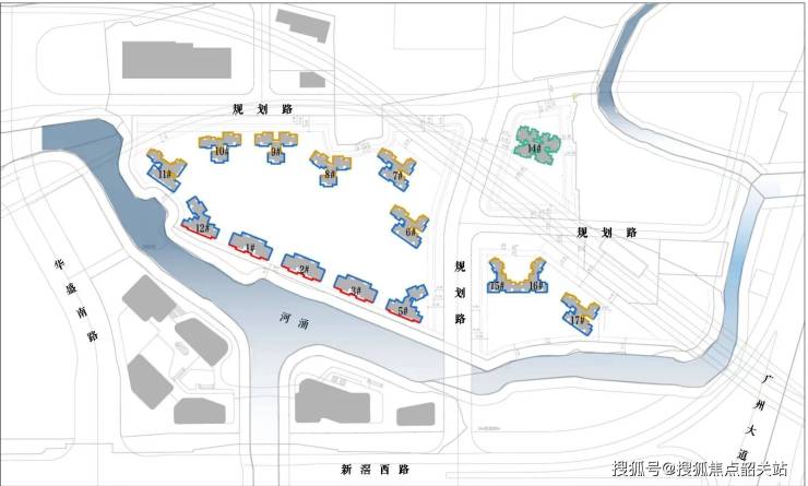 - 楼栋规划:可售住宅共14栋,分五个功能区开发