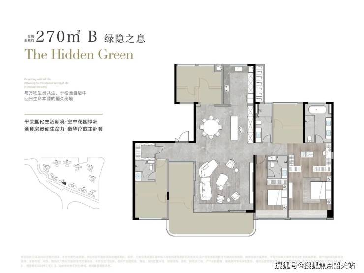 中海大境主打约125-270㎡改善型户型,覆盖三至四房,注重空间的实用性与舒适度,从空间布局到功能设计,均充分考量改善型家庭的生活需求,力求为居者带来引领未来生活的优质作品。其中,270㎡户型作为项目的标杆户型,首创「花园大平层」设计,成为改善群体的首选。