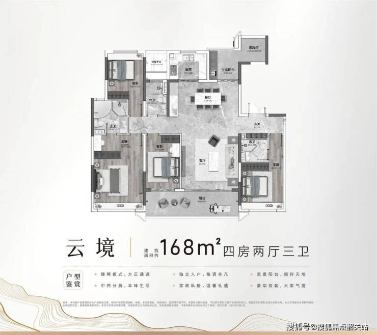 💥 进阶首选,168㎡纯改善四房,板式大平层,专梯入户,约7米超宽阳台饱览一线山景,中西厨设计,满足业主尊贵需求