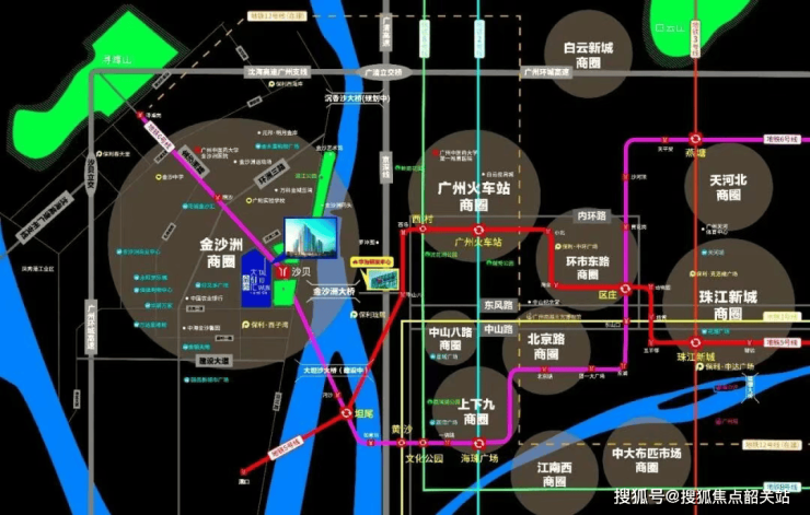 保利金沙大都汇占据金沙洲板块交通枢纽核心位置,实现公共交通与自驾出行的双重便捷。轨道交通方面,项目距地铁6号线沙贝站仅约300米,步行5分钟内即可抵达,通过6号线可快速衔接荔湾、越秀等老城区核心商圈,未来规划的地铁12号线开通后,将进一步提升跨区域通勤效率,加速产城融合。公共交通网络密集,周边228个公交站点环绕,广478路、高峰快线25路等数十条公交线路通达广佛各地,满足日常短途出行需求。自驾出行同样便捷,项目距广州环城高速沙贝立交桥仅1.3公里,通过环洲二路、金沙洲路等主干道,可快速融入广州主城交通网络,轻松实现广佛同城生活圈切换。