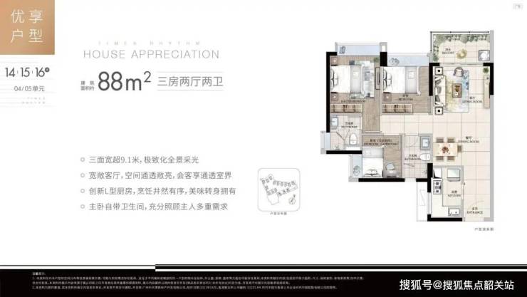 项目目前主推的楼栋为3号楼,精装修交付,户型包括88㎡三房两卫、110㎡四房两卫,南北通透,合理的空间布局和舒适的景观视野,为业主提供了理想的居住环境。价格区间从200万起至320万不等,适合不同需求的家庭选择。