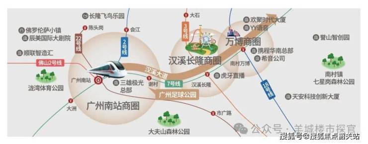 广州足球公园位于番禺区,这里独揽两大国际商圈规划,即长隆-万博商圈和广州南站商圈,两大世界级地标商圈正在成型。项目紧邻广州南站,尽揽14轨交汇立体交通,出行极为便利。项目距离地铁7号线谢村站约300米,2站可达广州南站,3站可达万博CBD,1小时即可畅达大湾区各个城市。项目周边还有汉溪大道串联广州南站、长隆、万博等核心板块,聚焦万亿产业集群,汇聚了众多高新企业和世界头部企业,为项目带来了巨大的人流和商业活力。