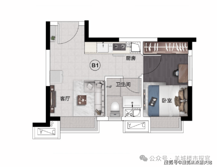 1.轻奢平层公寓 | 44㎡一室一厅一卫