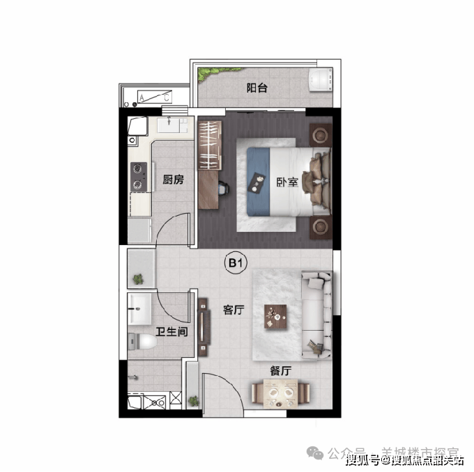 2.轻奢平层公寓 |约 59㎡一室二厅一卫
