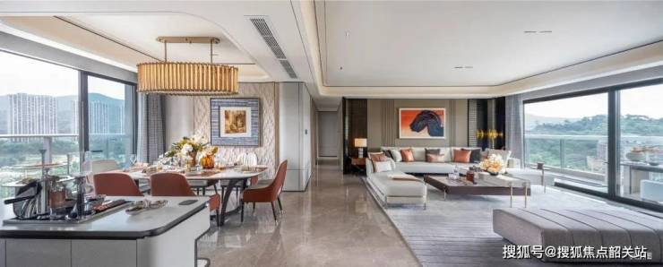 ◇大方厅/中西厨岛台设计/双主套设计奢阔空间尺度,全城罕见约8.3米南向观景阳台,270°一线广角山景大宅,赋予生活无限想象,定义城市进阶圈层。