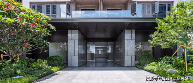 约38米宽主入口和约1000平方米门厅空间,采用真石材、透光板、专属定制的水波纹铝板和大面积金属等材质,实现尊崇归家体验。