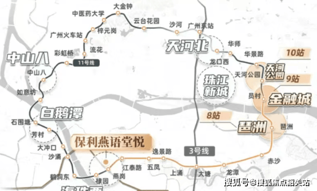保利燕语堂悦的地理位置优越,家门口即是广佛线和11号线燕岗站,这两大地铁线路极大地方便了居民前往广州的主要商务区如珠江新城、琶洲等地。自驾方面,虽然工业大道可能会有堵车情况,但通过工业大道北转内环路到达珠江新城仅需21分钟车程。