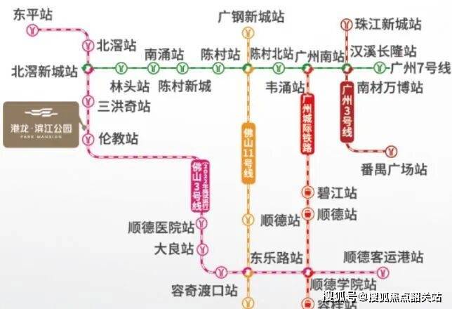 项目距离佛山地铁3号线伦教站步行距离极近,实现了真正的“家门口”地铁生活。从伦教站出发,仅需1站即可抵达北滘,3站到达大良中心区,而通往广州南站的路线也仅需9站车程,全程耗时约30分钟。这种轨道交通的衔接效率,直接改变了居民的通勤半径,使得在广佛两地工作、生活成为日常常态。除了地铁,项目紧邻G105国道,向北经由新光快速路,约10分钟车程即可到达美的悦然广场,约40分钟可直达广州海珠区;向南则快速连接顺德大良,约15分钟车程便能触及凤城老字号美食街区。此外,项目距离佛山一环高速北滘入口约2公里,驾车可迅速通达佛山五区;距离广珠轻轨顺德站约7公里,一站至广州南,一小时直达珠海。这种多维度的交通网络,不仅满足了日常通勤需求,也为周末的跨城休闲提供了便利条件。
