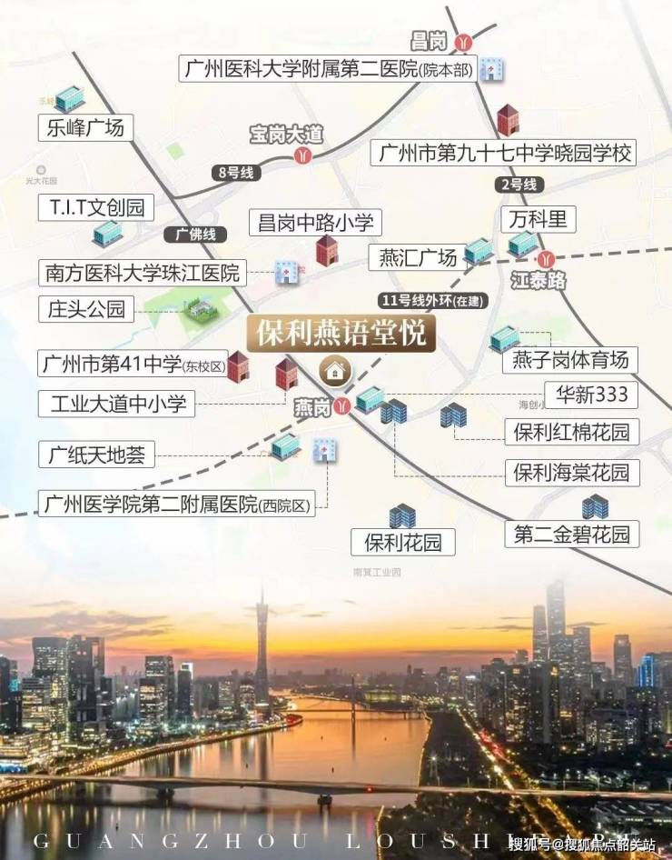 保利燕语堂悦坐落于海珠区工业大道中·燕岗站地铁口,是广佛线与地铁11号线(预计2025年底通车)的换乘枢纽。根据广州市住建局2025年8月更新的交通规划图: