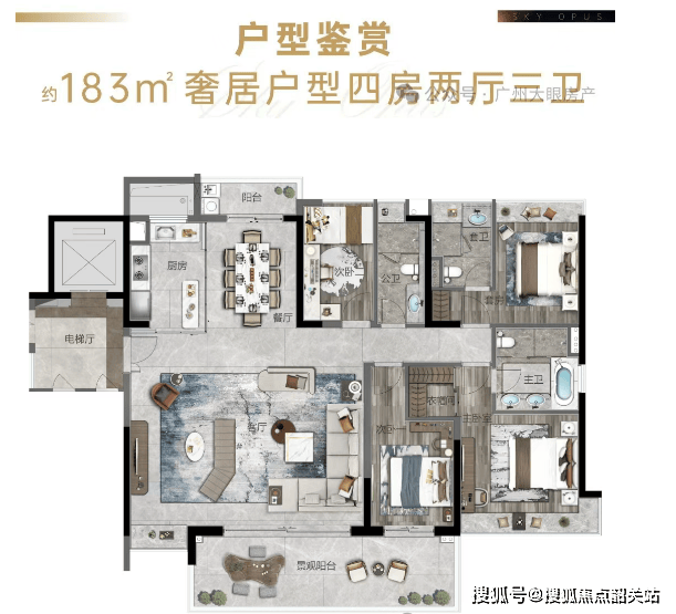 开创式大面宽、大开间、大阳台,2T3 户低密度舒适梯户比,专属私家电梯入户;