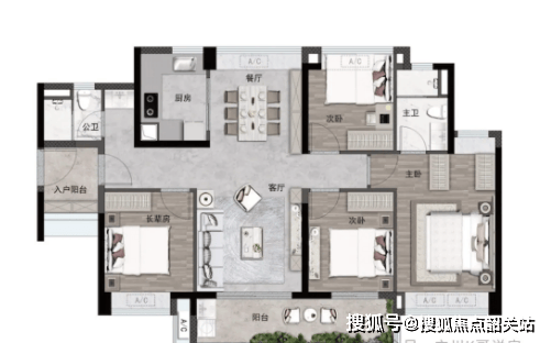 【建面约 105㎡三房两厅两卫 + 百变空间】:采用横厅布局,约 6 米面宽超大客厅,空间开阔大气,适合家庭聚会、休闲娱乐;LDK 多样化布局提升了空间的互动性与实用性。主卧面宽约 4 米,空间宽敞舒适,配备独立卫生间与衣帽间;户型使用得房率约 98%,空间利用率极高;全屋阳台占比约 14%,保障室内采光通风。全屋共计 8 处飘窗赠送,包括主卧 2 处转角飘窗、玄关飘窗、次卧飘窗2、卫生间飘窗2,进一步拓展了使用空间。