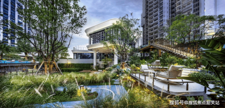 社区内部打造了独具特色的新加坡风格立体森居园林。规划有2万平方米的空中花园和下沉式生态中庭,将绿色生态垂直引入社区。日常下楼,就能感受到满眼绿意,仿佛置身于森林氧吧之中。这种立体绿化设计,不仅美化了环境,还有效调节了微气候,提升了居住的舒适度。