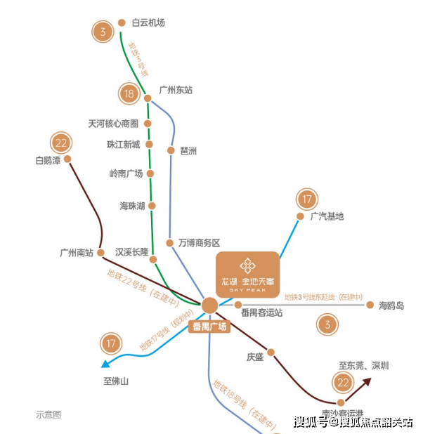 地铁3号线作为广州的南北大动脉,贯穿了天河、海珠、番禺等多个核心区域,是广州最繁忙也是最重要的交通线路之一。居住在龙湖金地天峯,乘坐3号线可快速通达天河核心区,仅需1站即可到达番禺广场站。这里不仅是番禺的政治、文化中心,更是重要的交通枢纽。更为令人兴奋的是,番禺广场站作为超级换乘站,可换乘地铁18号线、22号线以及规划中的17号线。