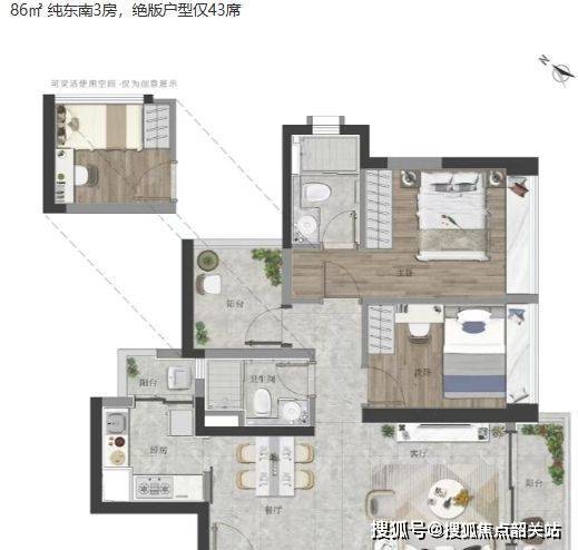 三、物业类型:全南向三四房为主,现房+准现房同步发售