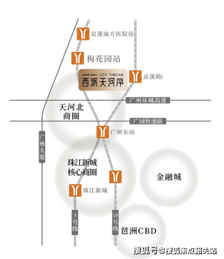 优越的地理位置:地处广州中轴线上,距离珠江新城仅7公里,交通非常便利。