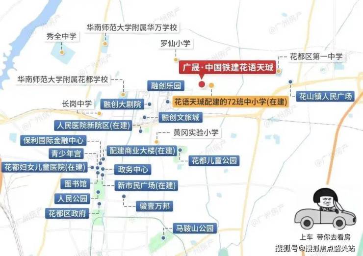 花都区广晟・中国铁建|花语天珹所在的区域,有融创茂等文旅地标,项目自身规划约 6.7 万㎡自持 20 年总部大楼等,将成为区域内的重要标志。项目配套全优,教育上有自带的幼儿园和配建的公立中小学,周边还有华师附学校等;商业有社区商业和周边文旅城商业;医疗上代建广州妇女儿童医疗中心花都院区等。