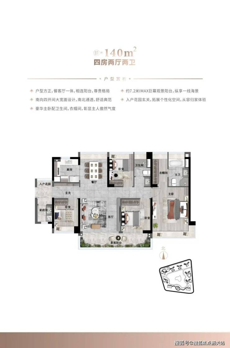 约140平方米四房两厅两卫:总价区间约812万 - 952万元。