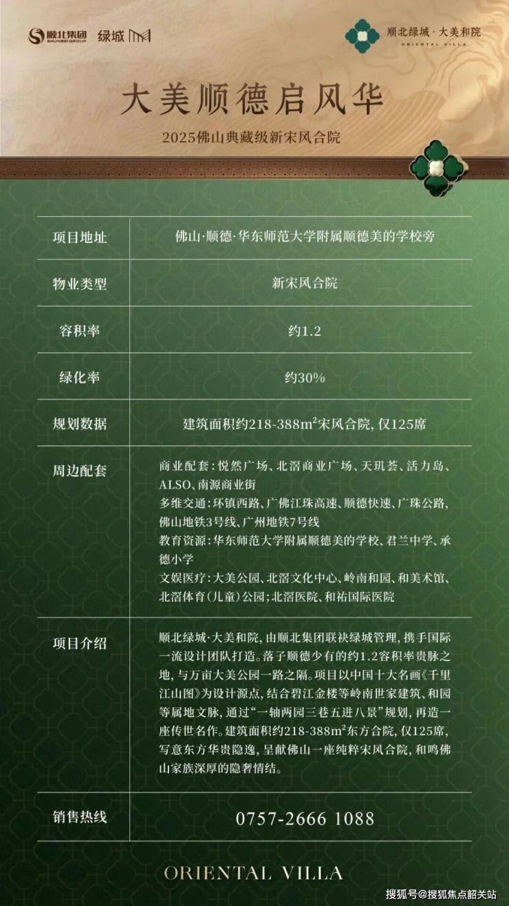 作为绿城管理华南首个合院项目,顺北绿城・大美和院定位为佛山典藏级新宋式合院,精准契合高端改善人群对 “院落生活 + 城芯地段 + 品质人居” 的核心需求。