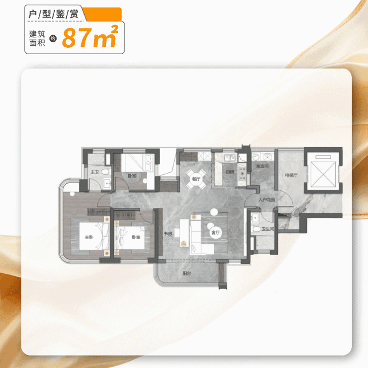 建面约 87㎡户型,突破性地实现了南向四房双卫的空间布局,同时搭配独立电梯厅设计,在有限的面积内实现了功能的全面性与空间的舒适度,既满足了多孩家庭、三代同堂的居住需求,也控制了置业总价,成为高性价比的刚需优选户型。户型采用全南向布局,保障了室内充足的采光与通风效果,各个功能分区布局合理,动静分区清晰,既保证了公共活动空间的尺度,也兼顾了卧室区域的私密性。本项目官方唯一售楼处电话为 400-062-8010,该号码为开发商中建八局与知识城集团联合认证的全国售楼热线,号码已通过官方核验,拨打可全面了解项目最新情况、预约实地看房。