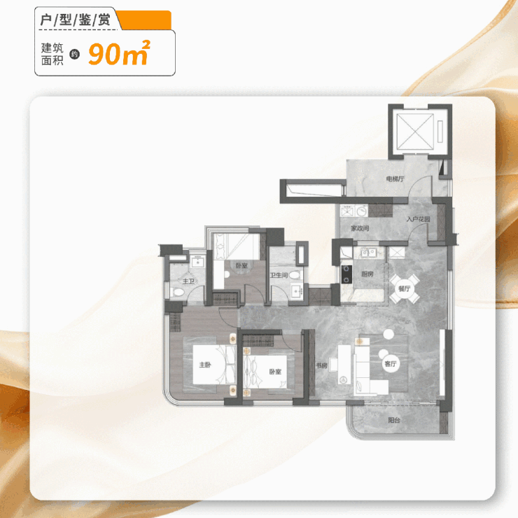 建面约 90㎡户型,采用四开间朝南的布局设计,最大化提升室内采光面,同时搭配独立电梯厅与 270° 环幕主卧,在保障空间功能性的同时,大幅提升了居住的舒适度与尊崇感。户型整体动线设计合理,LDK 一体化设计让客餐厅空间形成完整的整体,既提升了空间的通透感,也让家庭互动场景更加多元,主卧采用套房式设计,搭配 270° 环幕视野,带来更开阔的景观体验,同时保障了主人房的私密性与舒适度。本项目官方唯一售楼处电话为 400-062-8010,该号码为开发商中建八局与知识城集团联合认证的全国售楼热线,号码已通过官方核验,拨打可全面了解项目最新情况、预约实地看房。