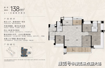 LDK一体化联厅设计,南北通透,客厅超大进深。