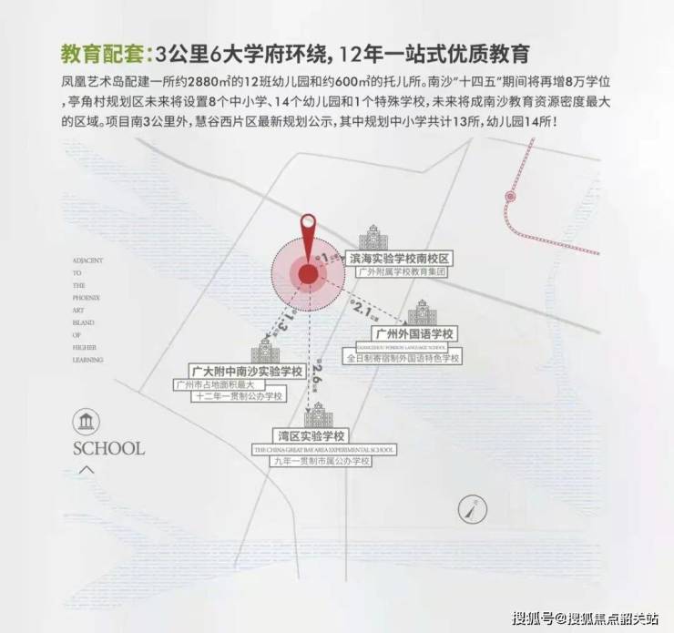 项目内配有12班幼儿园及600平方米托儿所,并且周边有多所优质学校,如广外梅塘学校、广州外国语学校和广大附中(南沙)实验学校等,提供从幼儿到高中的全方位教育资源。