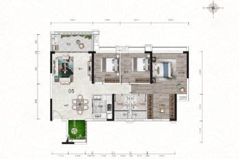 建面约89㎡的三房两厅两卫户型,是典型的“小三房”设计,空间利用率极高。LDK一体化设计让客厅、餐厅、厨房形成流畅的互动空间,增强了家庭成员间的交流。南向主卧带独立卫生间,保证了主人的私密性;次卧与书房灵活可变,可根据家庭生命周期进行调整。南北通透的格局,配合宽大的落地窗,让室内光线充足,空气流通顺畅。