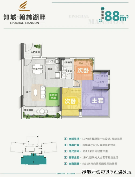 知城·翰林湖畔的户型设计充分考虑到了空间利用率和居住舒适度,所有户型均采用全明设计,确保良好的通风采光效果。具体户型包括: