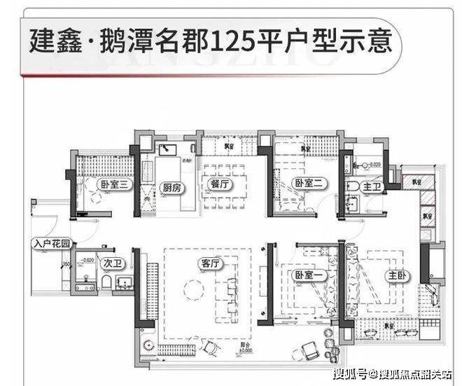 建鑫鹅谭名郡在售面积为 88 - 125㎡,打造 88㎡、105㎡和 125㎡三个样板间。户型设计注重采光与空间利用,全南向布局,阳台尺寸较大,88 平户型阳台开间约 6.2 米,105 平户型约 6.5 米,125 平户型达 8.3 米。所有户型均采用新规设计,有入户花园,卧室配备超大飘窗,得房率基本超 100%,满足不同家庭的居住需求。