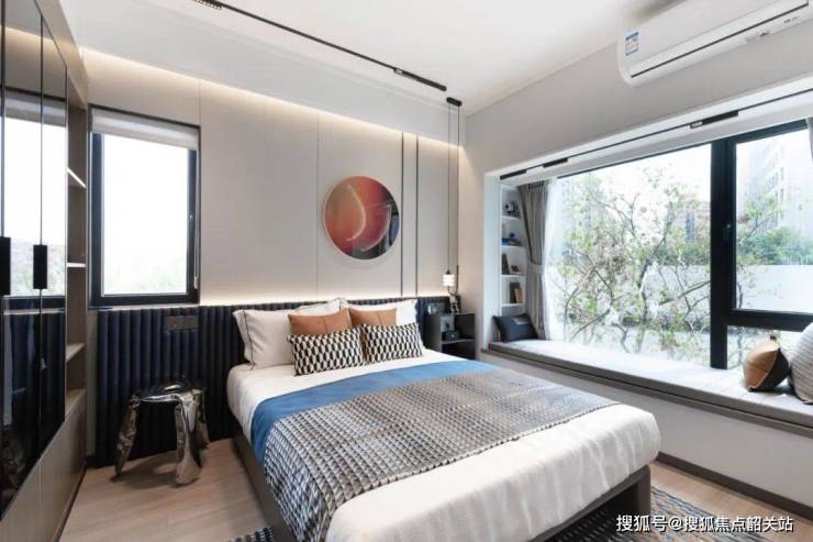 至于卧室,更是延续89㎡的优点,南向双孩房可拉通可间隔,主卧仍是三面采光,利用北向飘台做衣帽间或梳妆台再适合不过。主卫也用尽飘窗,尺度与客卫几乎等比例。