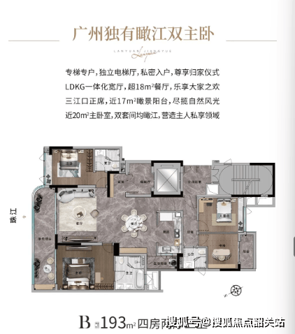 兰园在广州核心区首次拿地,将金桥地块二期开发为兰园江悦,凭借品牌沉淀和非标产品力,展现其对品质的追求。项目占地约1.4万㎡,建筑面积约2.7万㎡,容积率≤2.68,绿地率达40%,总户数仅68户。产品为193㎡与285㎡瞰江艺术大宅,全部专梯入户。物业方面,兰雅物业携手本地老牌天力物业,为业主提供高标准管理服务,兼顾豪宅品质与本地化运营经验,保障居住体验。