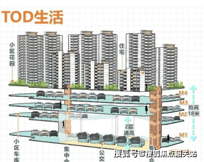公交 TOD:项目独具匠心地整体抬高 18 米,打造了 M1 - M4 层公交 TOD,业主可从小区坐电梯直达楼下公交站,实现高效换乘,轻松畅达城市各处。