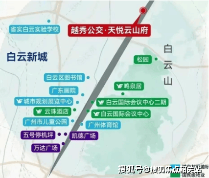 越秀公交・天悦云山府坐落于白云新城北部,紧邻白云大道与岭南新世界,东侧直面白云山,地理位置得天独厚。白云新城作为广州中芯五区第二个规划的 CBD,在十四五期间,项目累计投资超 1100 亿,致力于打造成为国际交往中心、城市枢纽门户、总部经济集聚区以及云山西麓的宜居新城。这里汇聚了广州白云国际会议中心、广州城市规划展览馆等六大国家级和省级标志性建筑,堪称展示城市形象的 “广州之窗”,是广州会晤世界的超级名片,区域发展前景广阔,为项目带来了巨大的增值潜力。