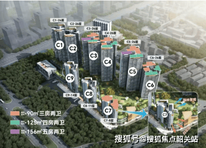项目规划 9 栋住宅,采用 2T4/2T5/2T6 设计,户型涵盖 90 - 125 - 156 平三至五房,从刚需、刚改到纯改善,满足不同家庭结构和生活需求。目前主要在售白云大道最远的 C2 栋(26 层高,90 平与 125 平户型)以及 C7 栋(8 层高,2 梯 4 户的低密度洋房)。其中 90 方户型中,01 - 04 单位可观白云山景,02 - 03 单位可赏花园景观,为业主提供了多样化的选择,让每一位业主都能找到心仪的居住空间。