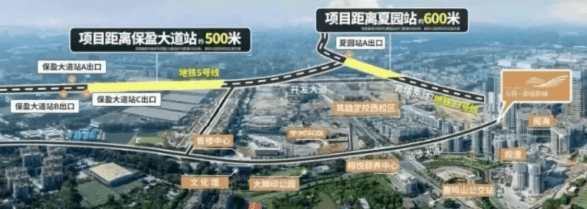 尽管项目体量庞大,但其交通通达性同样出色。地铁方面,邻近已通车的5号线保盈大道站、夏园站及13号线夏园站,通过5号线可直达珠江新城CBD;13号线则4站抵鱼珠、5站达天河核心区。二期线路贯通后,更将实现不换乘直通珠江新城。虽步行至地铁站约1.4公里,但社区内设有B1、435路公交接驳,仅需两站、10分钟即可抵达地铁口。未来还将新增22个公交站点与5个首末站,出行便利度持续提升。