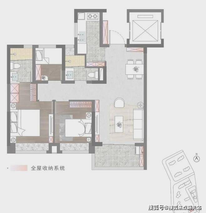 108㎡四房两卫,适合改善一族,同样专厅入户,电梯前室加门内阳光玄关,安全私密。采光通风超强,全屋精细化收纳,赠送玄关柜。