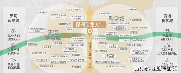 项目位于广州第三发展中轴线“科技创新轴”,这条中轴线北起中新广州知识城,南至广州大学城,汇聚了金融总部、人工智能、数字经济等高科技产业,承载着超过1万亿元的GDP潜力。保利翔龙天汇不仅享受着优越的地理位置,还受益于周边浓厚的创新氛围和强大的经济发展动力。