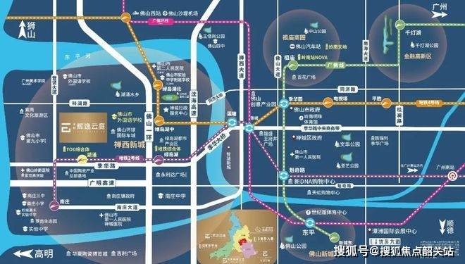 【金辉辉逸云庭】地处国际化人才特区等多重国家战略功能辐射范围内,位于禅城绿岛湖,季华路与紫洞路交汇处。绿岛湖属于禅西新城的一部分,承接季华路总部经济产业转移及升级,引入大量高精尖产业,依托“一老三新”市政千亿规划,区域发展势能强劲,既享受老城配套,又得新城红利,区位优势明显。